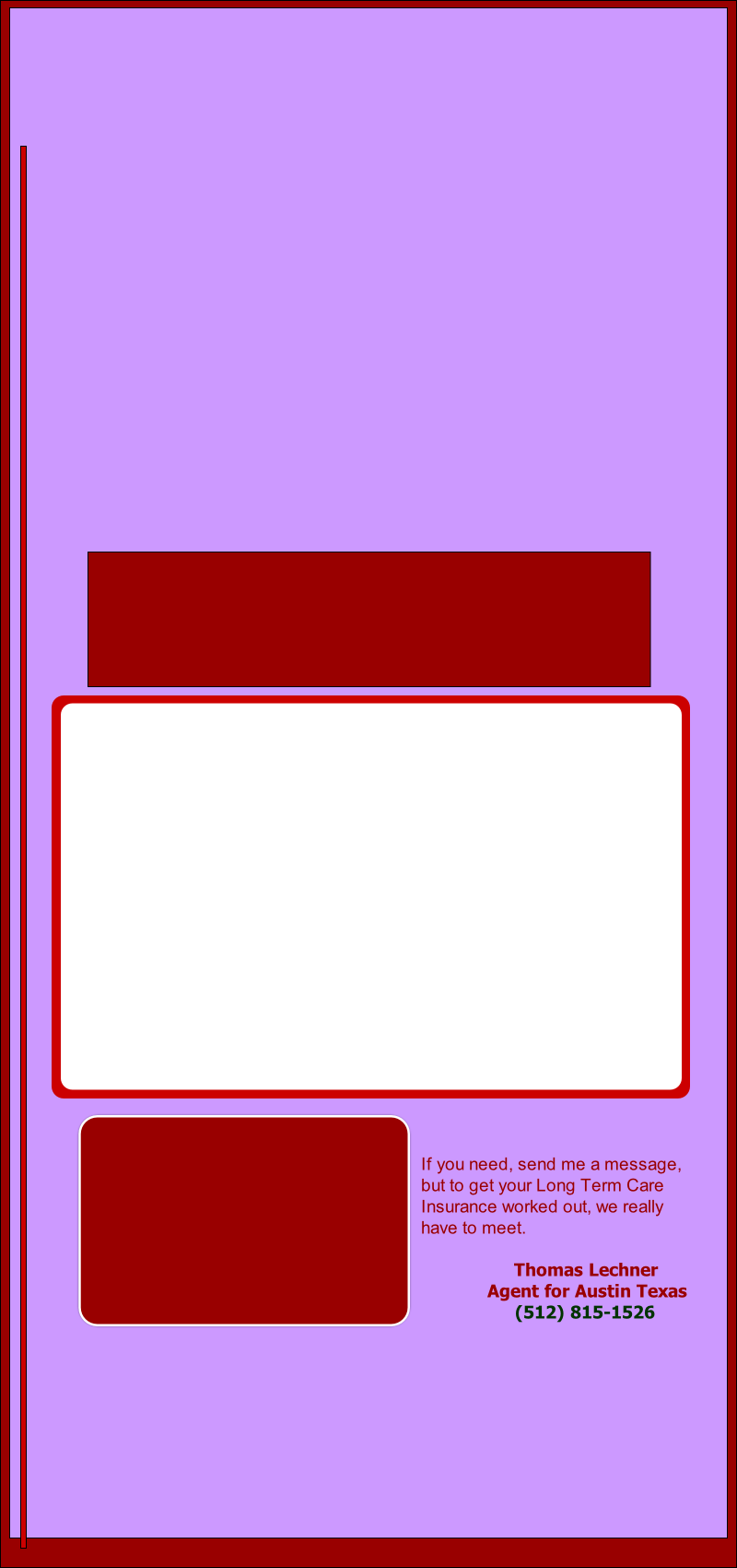 Call for an  appointment          (512) 815-1526       Thomas Lechner LONG  TERM  CARE , and Home Health Care Be properly insured for the time  when you need it the most ! Health Insurance             Life Insurance Plans & Supplements                  Term, ROP, (I)UL, Whole  Medicare                         Retirement Plans MA Dps, PDPs, Sups                   Life & Annuities Other available great Information Health Insurance for Austin Medicare Health Plans for Austin Life Insurance for Austin Retirement Planning Insurance for Austin